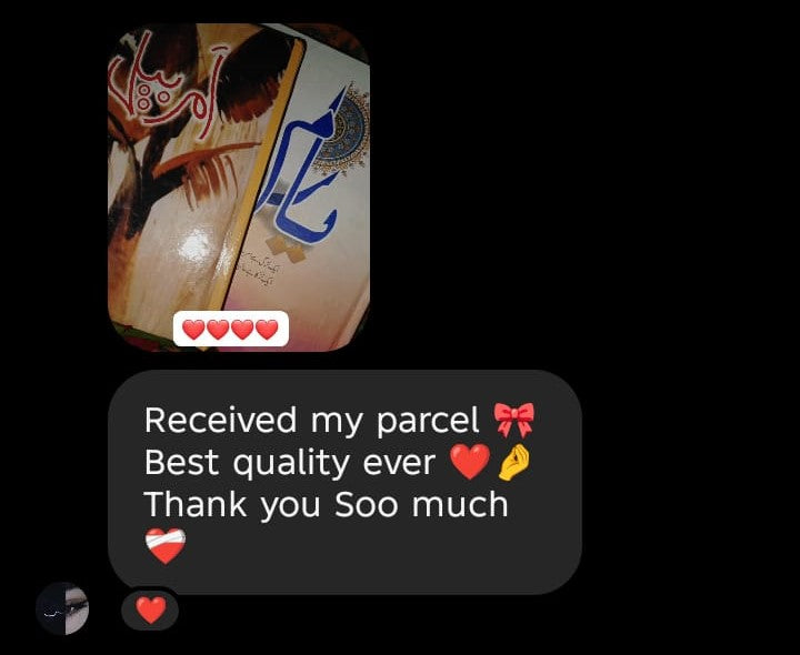 I received my order quality was too good. affordable price nice packaging or jaldi bhi agaya bohat thank you